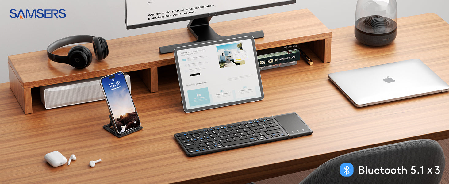 Innovative seamless metal hinge, allow you to adapt to its layout anytime and anywhere. Quiet scissor-switch keys and non-slip PU leather at the bottom, so that you can fully concentrate on your work !